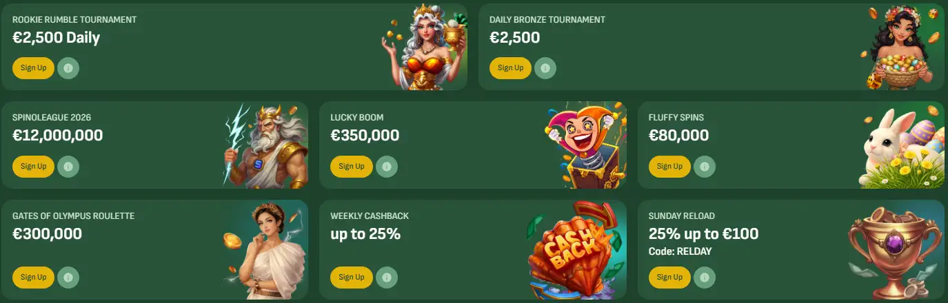 | Sunday Reload | 25% | €100 | Code: RELDAY |